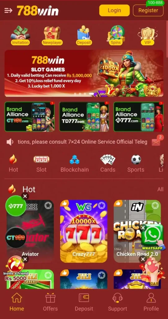 788win is a name used by multiple websites and APK‑based games that claim to offer online casino‑style gameplay and earning opportunities. These platforms often blend mini casino games such as slots, card games, and betting elements into a mobile app interface.